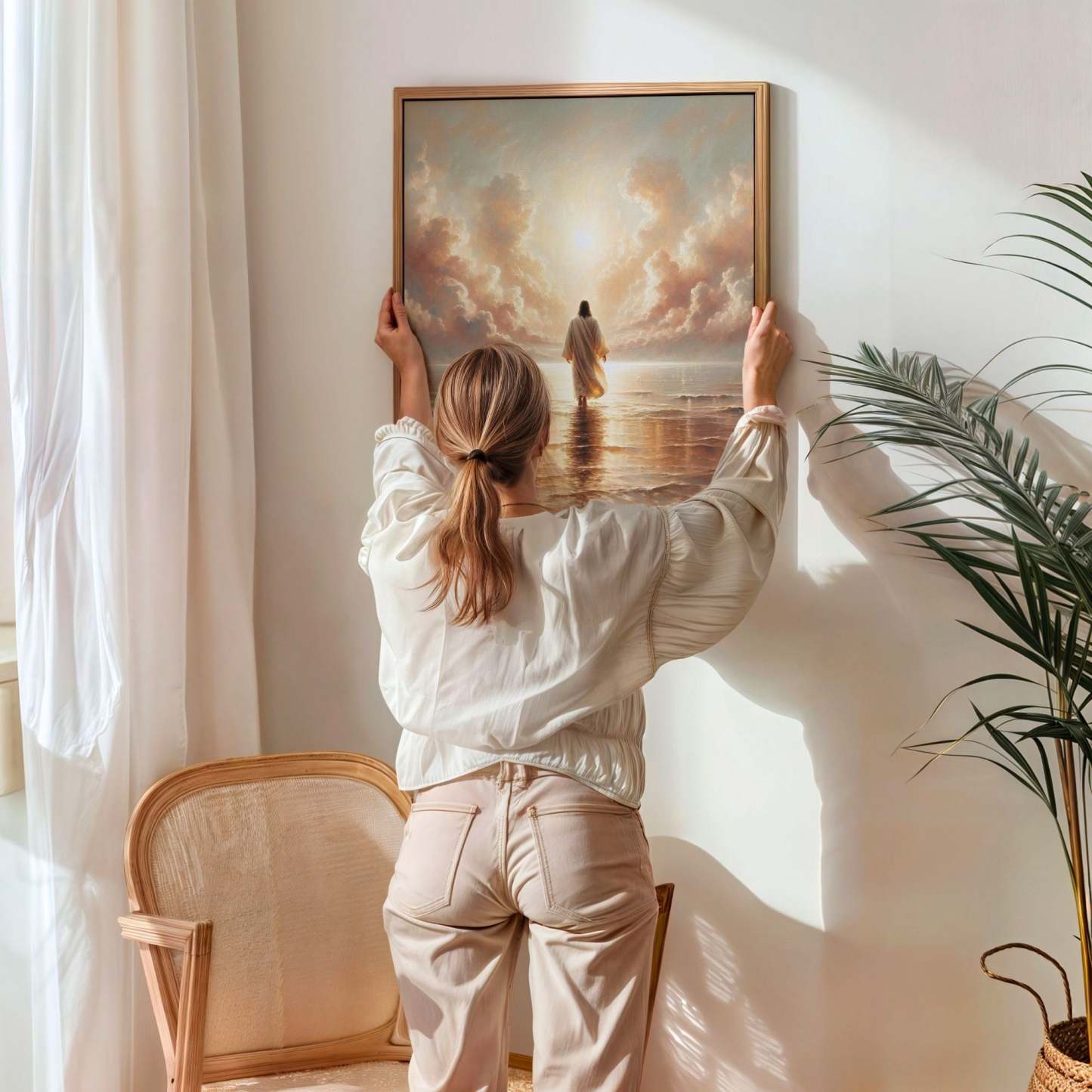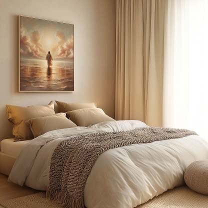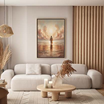 Inspired by Matthew 14:22-33, this artwork is a reminder that faith is trusting even when you feel unsteady. No matter the fear or uncertainty, Jesus is always near, hand outstretched, ready to lift you up. Hang this piece as a daily encouragement to keep your faith strong—because with Him, you will never fall.