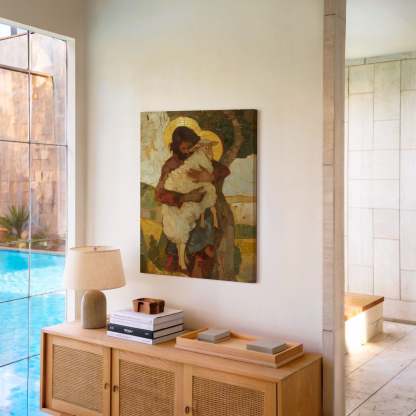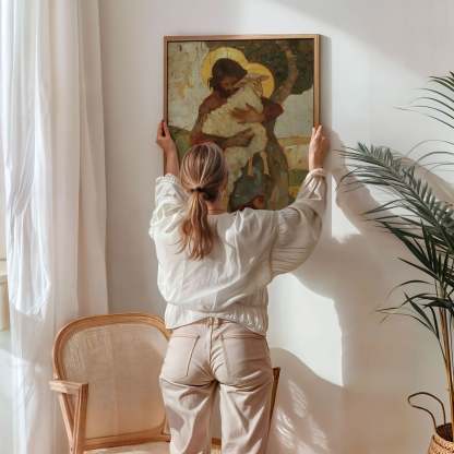 Inspired by His endless grace, this artwork captures the most comforting truth—Jesus embraces you fully, just as you are. The woman in His arms represents all of us, broken, weary, yet deeply loved. No burden is too heavy, no past too stained—His love is always waiting for you. Let this canvas be a daily reminder that you are never alone, never forgotten, and forever held in His love.